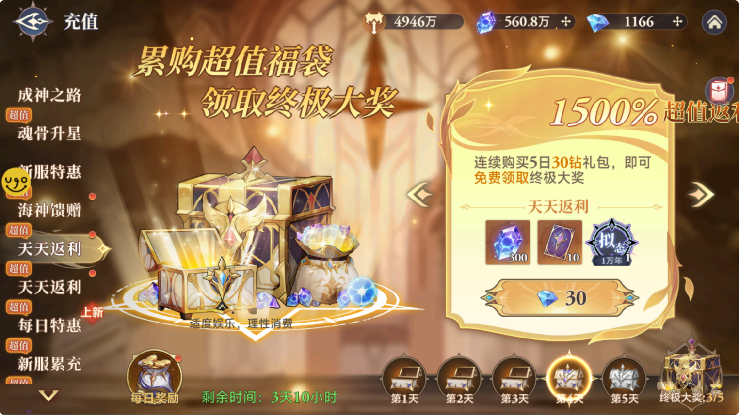 除了每日购买给的道具以外还有购买五天给的超级大奖 ,性价比很高