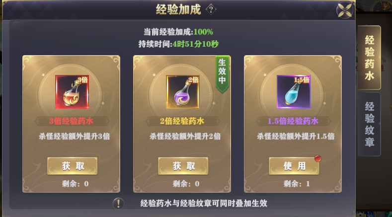 3.进入经验副本时一定要记得喝多倍经验药水,这个很关键 |