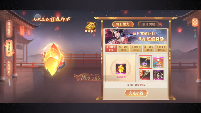 想长玩的,每日6元是必充的拿个倚天剑,前期战力膨胀得较快
