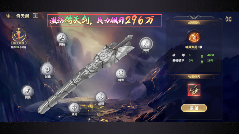 有条件的可以搞空谷剑意特权;可增加材料掉落收益+额外属性