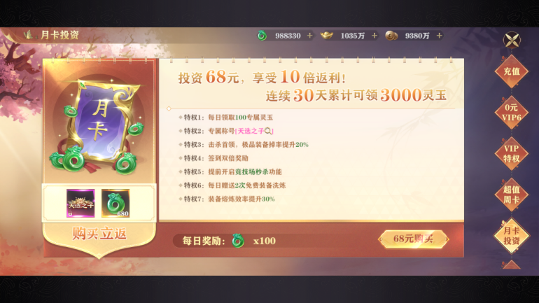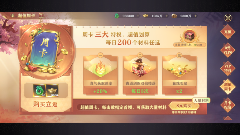 2.月卡可以提升boss掉落