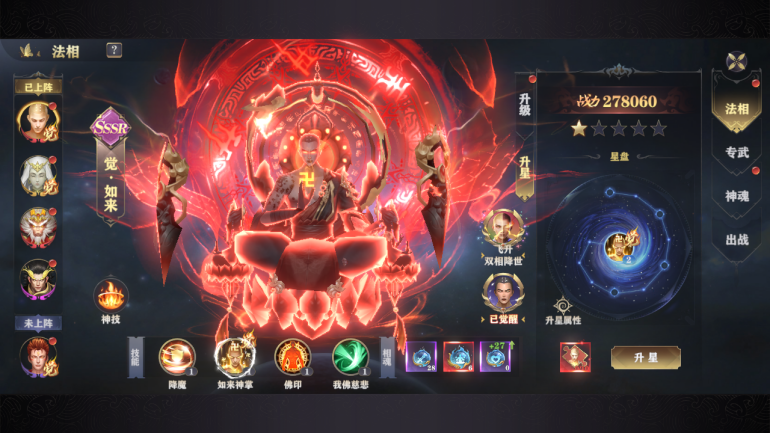 推荐养成较强的法相:如来;庄周;蚩尤;女娲;达摩;关羽