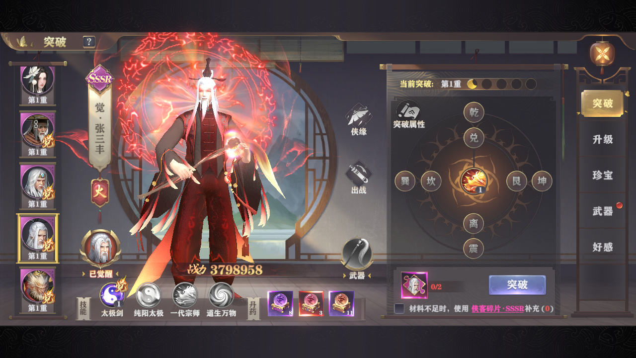 突破可提升侠客的平a伤害和基础属性
